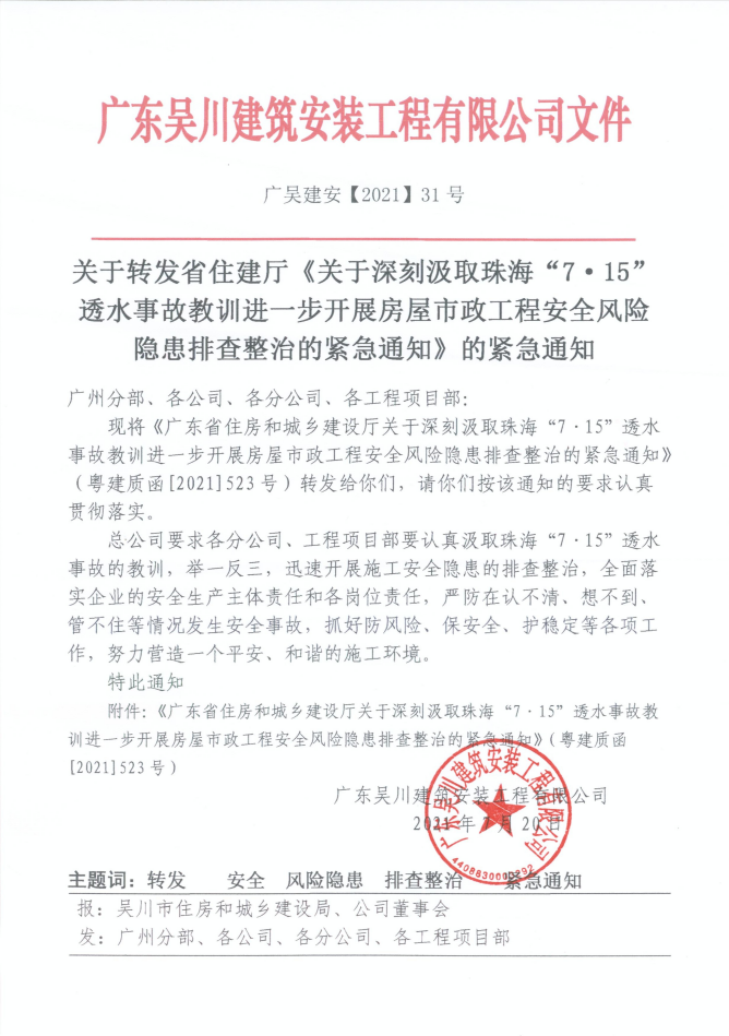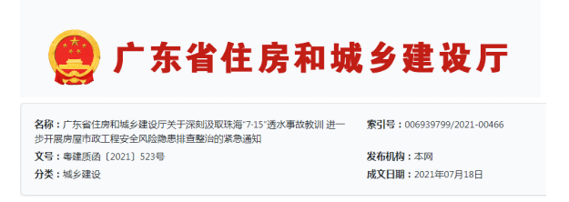 廣東省住房和城鄉(xiāng)建設(shè)廳關(guān)于深刻汲取珠海