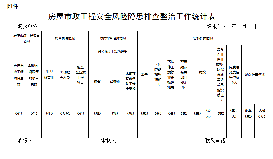 附件:房屋市政工程安全風(fēng)險隱患排查整治工作統(tǒng)計表
